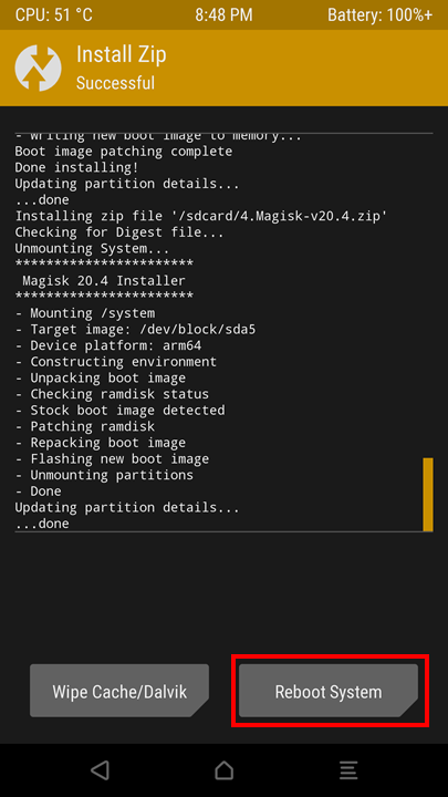 4번 Magisk까지 플래싱하셨다면 Reboot System 클릭