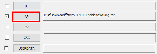 AP를 누르고 아까 받았던 TWRP파일을 선택해주세요