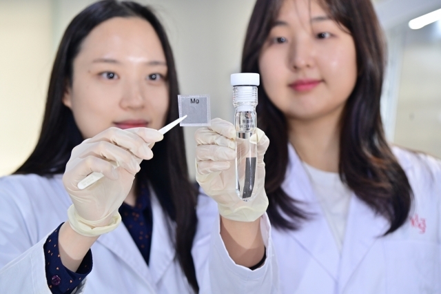 마그네슘 금속 화학 활성화 프로세스로 충전/방전 효율 향상 KIST 연구진은 화학 활성화 과정을 통해 고효율 충방전이 가능한 마그네슘 양극을 살펴보고 있습니다.[KIST 제공]
