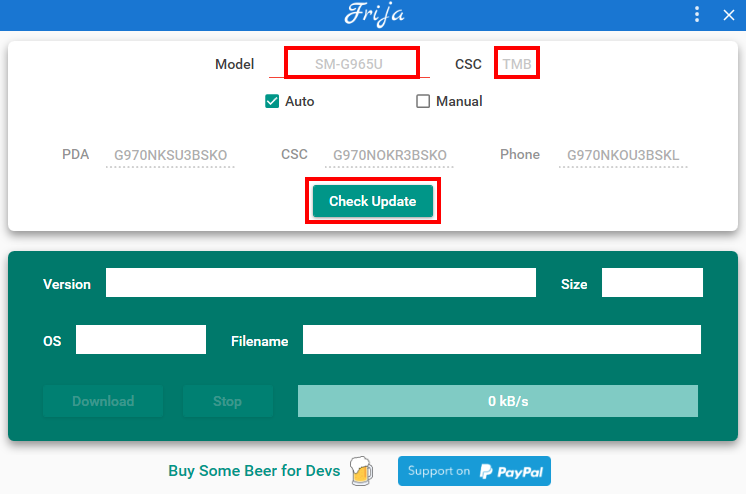 모델과 CSC코드를 입력하셨다면 아래 Check Update를 눌러주세요