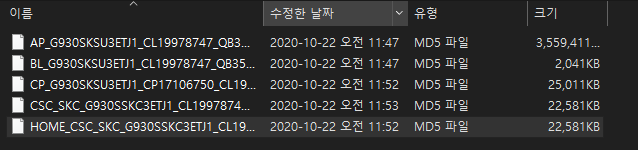 펌웨어 파일 이름에 BL AP CP CSC 이렇게 적혀있으니 그대로 선택해주면 됩니다.