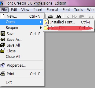 1. 준비물 : 폰트 크리에이터(FCP5) 외계어 지원 안돼는 폰트 ttf파일 1개