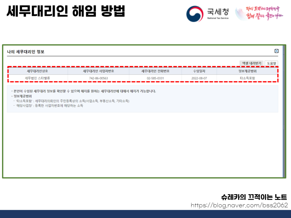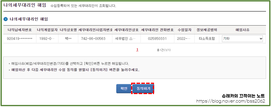 그러니 더 이상 서비스를 이용하지 않으려면 홈택스에 들어가서 세무대리인을 해임해야 합니다.