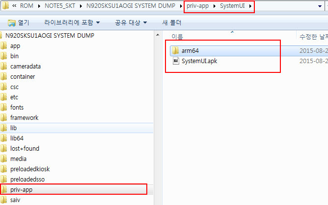그리고 /system/priv-app/SystemUI/arm64 폴더에서 SystemUI.odex (arm64)