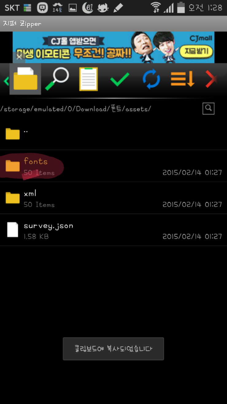 3. 지퍼를 이용해 폰트를 추출하겠습니다.