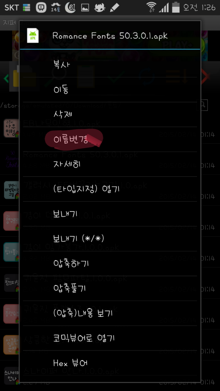 이건 Romance Font 50이라는 어플을 추출해서 그렇습니다.